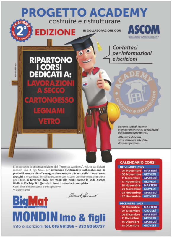 Mondin Imo & Figli, in collaborazione con Ascom Biella, dà il via ad una nuova serie di corsi di informazione gratuiti, sul corretto uso dei materiali in edilizia.