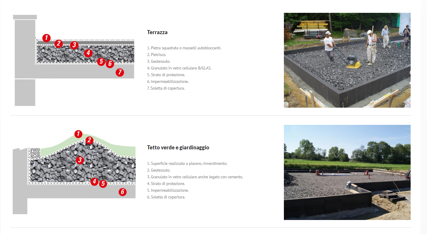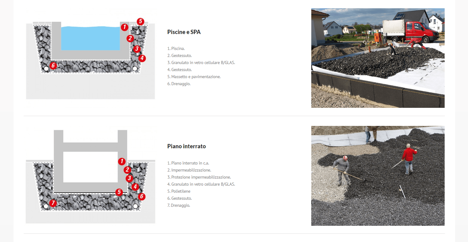 Il vetro cellulare in granuli B/GLAS è un’ottima soluzione per tutte quelle applicazioni in cui si richieda di eseguire dei riempimenti con un materiale molto leggero, termicamente isolante, che non assorba acqua ma che offra al contempo una elevata resistenza alla compressione.